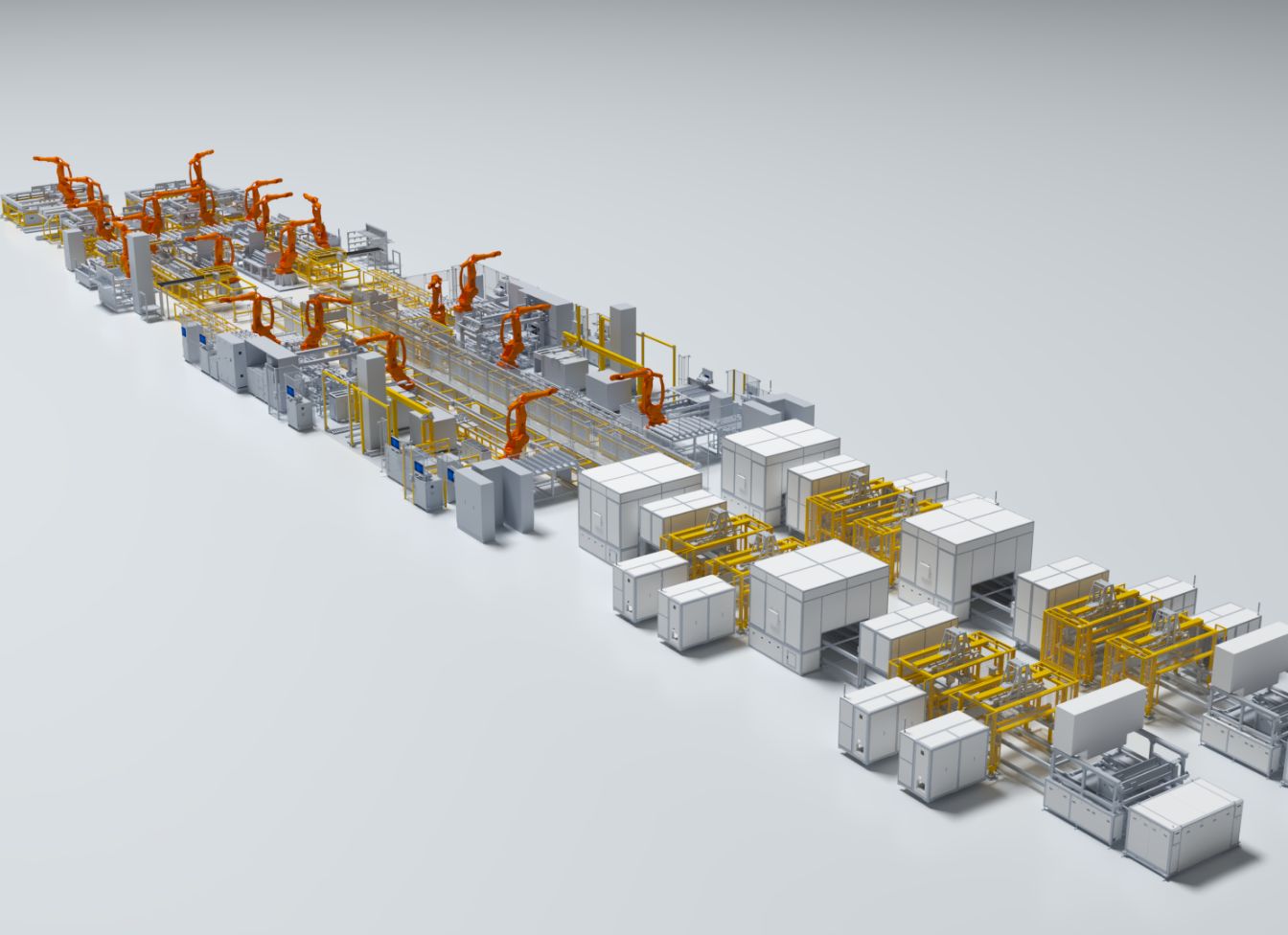 - 产线自动化程度高、核心工站Beam成组、Block堆叠、模组堆叠均采用机器人自动完成,减少人为因素影响、效率高,一致性强。